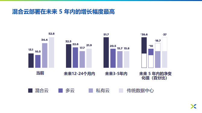 另外,面对中国这个特殊的市场,Nutanix在报告中进行了特别阐述。应关注的是,预计在未来3到5年内,中国企业混合云部署的增长幅度将高达53%,混合云部署比例预计将达到70%,远超全球平均水平(51.74%)。以此可以看出,中国企业正在积极、主动地进行IT基础架构的转型和数据中心的现代化改造。
