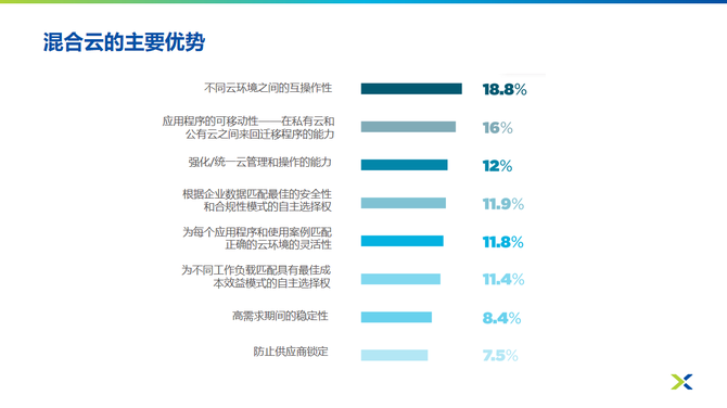 报告中还总结了混合云的主要优势,其中最被受访者认可的包括不同云环境之间的互操作性、应用程序的可移动性、强化/统一云管理和操作的能力等等。与此同时,IT决策者对于未来的云部署也有很多顾虑,其中云的安全性、技能可获性(如云原生技术)、法规政策等等,都是备受关注的考虑因素。