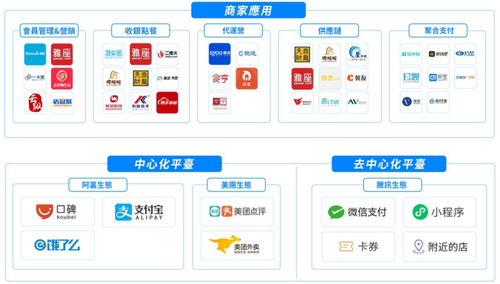 目前,餐饮行业流量被中心化流量平台掌控,商家在承担高昂佣金抽成等费用的同时流量红利逐渐消失。此外,餐饮行业存在会员、收银、外卖、点餐、预订、供应链等多个场景,各场景由于服务商的不同导致互相割裂。