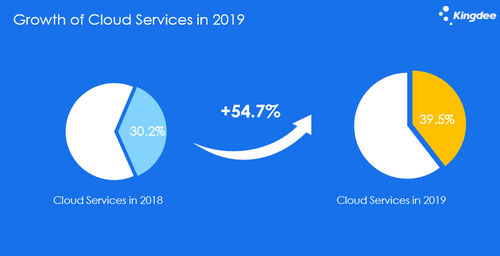 在报告期内,金蝶国际软件集团在2019年的全年收入为33.3亿,2018年为28.1亿,同比增长18.4%;净利润下跌9.6%,经营活动产生的净现金流增长6.3%。其中,金蝶2019年的传统软件增长2.7%,占比仍达60.5%。云业务收入为13.1亿,同比增长54.7%,占整个公司收入比重39.5%。云收入取得大幅增长再次验证金蝶战略转型的正确性,金蝶希望在2020年能够调整收入结构,让云服务成为公司主要收入来源。