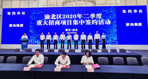 6月23日,重庆市渝北区重大招商项目集中签约活动在重庆市仙桃数据谷举行,在此次签约活动中,重庆市渝北区政府、重庆市住房和城乡建设委员会与紫光云公司签署合作协议,将在渝北区落地紫光建筑云总部基地,三方将围绕推进建筑产业数字化转型、共同培育建筑产业数字化生态等领域展开深度合作。重庆市渝北区委书记唐川与紫光集团全球执行副总裁、紫光股份总裁王竑弢,紫光云公司总裁兼CEO吴健出席签约仪式并共同见证签约。紫光建筑云总裁牛亚娟代表紫光云公司签约。