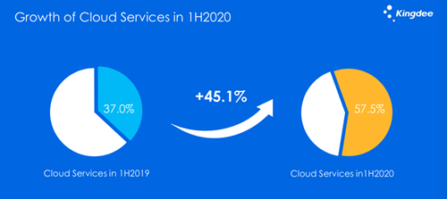 从2019年上半年开始,金蝶云收入占比就在增加,到今年上半年,已从之前的37%增加到 57.5%,真正成为了公司的主营业务。传统业务加速云端迁移,使得原有的软件业务收入下降了37%。目前, K/3 WISE、KIS产品已经开始下架,这让公司减少了约2-3个亿的收入。