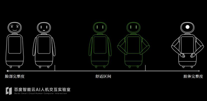 友好外观的背后是百度智能云AI人机交互实验室团队对两个关键问题的科学论证和解决,即机器人的面部表情拟人度是否是越具象越好?机器人肢体完整度到多少是合适的?面对这两个机器人设计过程中的难题,设计团队选择使用更加科学理性的方法得出了结论。