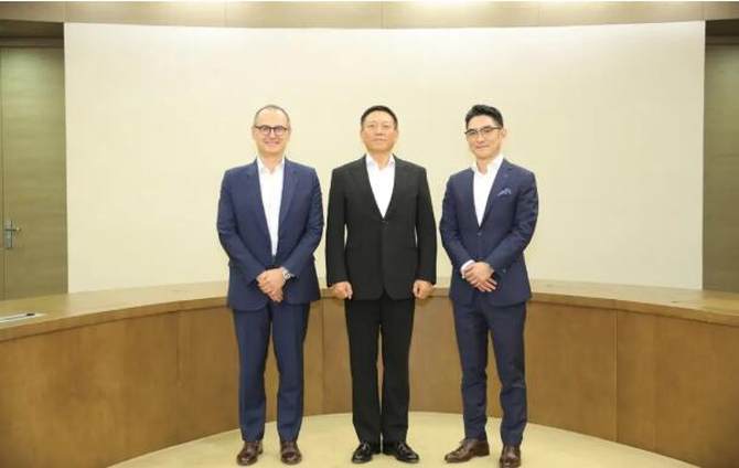 从左至右:IBM 大中华区首席执行官包卓蓝(Alain C. Benichou)、神州数码集团董事长兼总裁郭为、红帽(Red Hat)全球副总裁兼大中华区总裁曹衡康