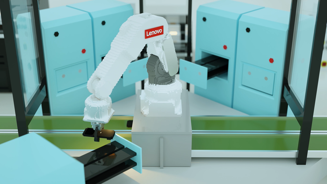 为了体现科技的魅力,在以联想武汉工厂为代表的多个智慧场景中,均加入了超越Minecraft游戏自身风格的丰富动画。例如旋转自如的机械臂、姿态充满细节的多种小主角、和按照既定非直线线路变速运行的无人车等。这些动作均系在后期渲染中结合了更高阶动画思维制作的成果,使整体画风和主体运动摆脱机械单一,更加细腻、生动。
