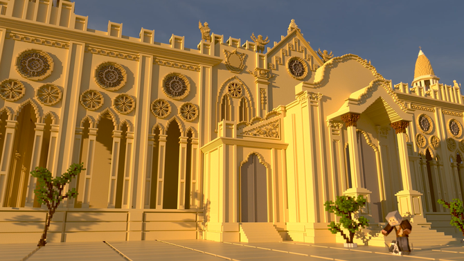 微电影的结尾,武汉上空的烟花照亮了人们的笑脸,这其中的明暗对比、光影变化都超越了传统MC游戏对光源的把握。SuperNova团队依照真实的光学传播原理,重新设计光照,即便在千万级立面渲染场景中,也创造了最真实的光影效果。