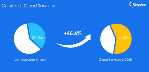 2021年3月24日,金蝶国际发布2020年全年业绩报告,整体云业务收入同比增长45.6%,收入占比为57%(接近60%)。由于云订阅业务强劲成长,订阅服务相关的合同负债同比增长95.7%,金蝶云订阅年经常性收入ARR约为人民币10亿元,同比增长58%。