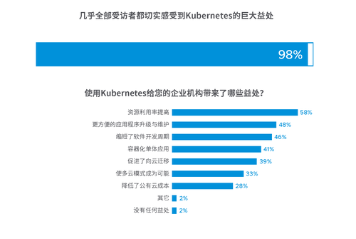 那么,Kubernetes能否满足期待?根据我们最新的调研结果,企业机构组织正从使用Kubernetes中受益。来看看受访者认为的最大益处:
