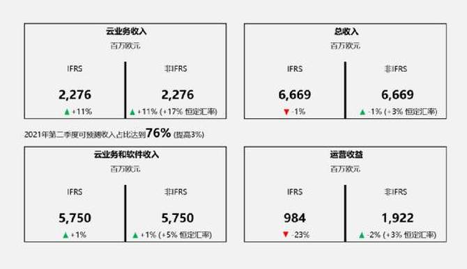 当前的云待交付业务增长也进一步加速。正如预计的那样,随着越来越多的客户采纳了订阅式的“RISEwith SAP”,软件许可收入有所下降。