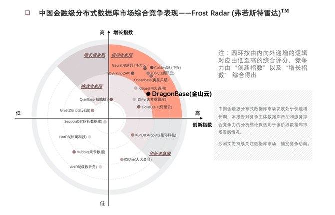 图一:金山云DragonBase入选《2020年中国金融级分布式数据库市场报告》领导者象限