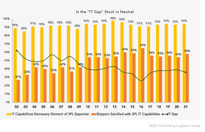 ▲ 托运人和 3PL 之间的“IT 落差”(图片来源:2022第三方物流研究报告 )