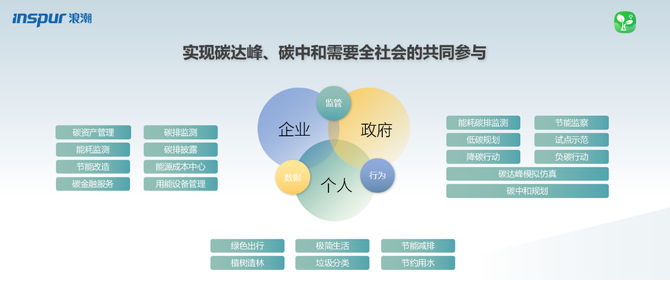 实现碳达峰、碳中和是构建人类命运共同体的庄严承诺,每个组织都承担着一份绿色使命。未来,浪潮将联合包括咨询、金融、环保等企业机构在内的众多生态,为政府、企业提供一站式碳管理综合解决方案,推动构建“数字与绿色共舞,经济与社会并进”的发展新格局。