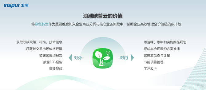 作为国内领先的企业管理软件与云服务提供商,浪潮将绿色可持续发展作为重要维度加入企业商业分析与核心业务流程中,并正式推出碳管云一站式碳管理平台。