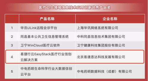 近日,第二届“鼎信杯”信创大赛发布最终获奖名单,共有54款产品从598个参赛产品中脱颖而出。大赛从功能、性能、推广价值等专业视角发现优秀产品和解决方案,激发创新活力,发挥标杆作用,促进供需对接,加快行业应用,助推信创产业发展。易捷行云EasyStack医疗行业信创云解决方案荣获“医疗卫生领域信息技术应用创新优秀应用产品奖”。