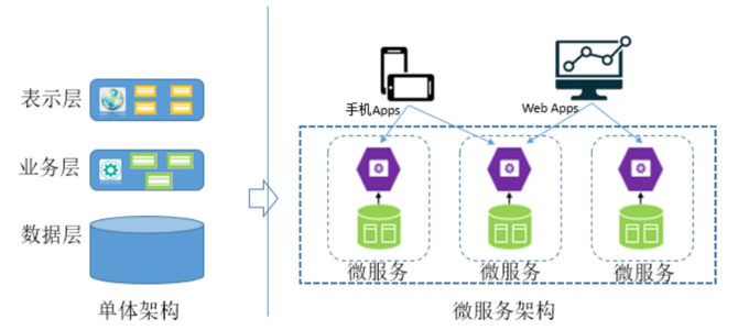 图 3 单体架构演化到微服务架构