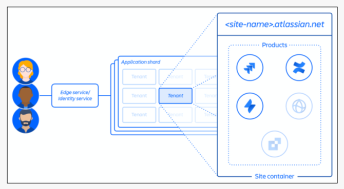 Atlassian的网站ID(企业顾客网站URL网址)也是一个网站容器,将一家企业的所有数据、配置和所用的APP,都登记到这个网站ID来管理。图片来源/Atlassian
