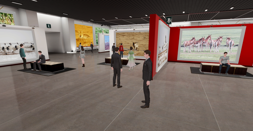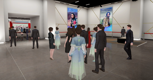 活动现场,众多媒体云集,数百人通过虚拟分身,在元宇宙实时观展、社交,助力青海生态守护的公益事业。