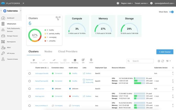 Platform9提供了许多工具来帮助管理在云中运行的集群