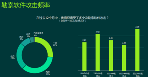 调查发现,勒索软件攻击态势不仅变得越来越强,而且覆盖面越来越广,导致企业不得不加强数据防护。在“您估计勒索软件成功加密了受攻击企业的多少百分比的生产数据”这个问题设置中,总体数据是47%,这意味着企业在数据保护和数据备份方面还有很大提升空间。
