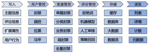 评论从生产到读取历经多个环节,下图是评论生命周期中各个环节的简易模型: