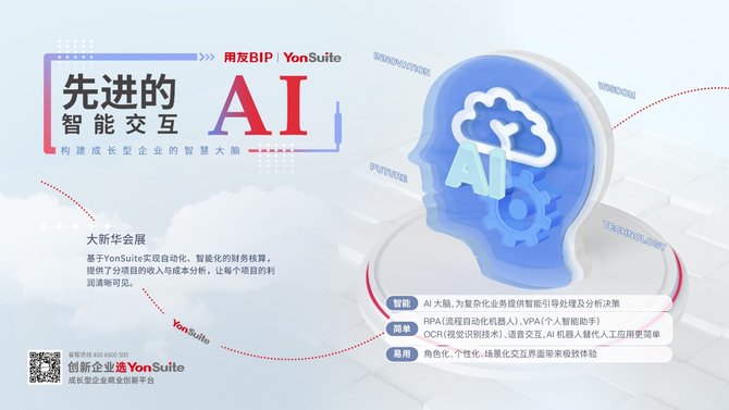 值得一提的是,上述所有业务场景的覆盖能力,源于用友在底层平台的技术投入。包括借助AI技术,充分利用机器人技术、数据挖掘技术让业务处理更智能化。比如:通过IP机器人,可以进行智能化连接,进行自动化分析、自动化决策,实时驱动业务。再比如:友空间,因为是全员应用,很多工作行为可以和业务紧密相连,甚至在聊天的时候就能处理业务,因为友空间把很多业务处理的节点推送到聊天框里。