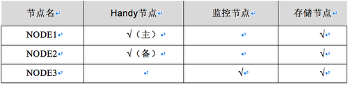 管理节点主要用于针对存储集群的管理程序的控制,做好规划后,管理节点按照规划的信息进行集群的安装部署,并将监控信息图形化,给存储节点服务发布命令等,集群需要配置两个管理节点,一主一备。 监控节点主要针对集群的运行健康状态进行监控,每个集群的监控节点数量必须为奇数个,范围3~7个。一套三节点集群的节点角色部署样例推荐规划如下: