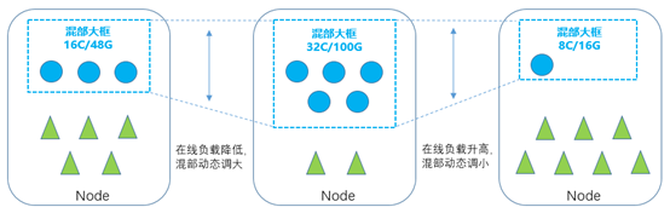 任务调度。根据前文所述的混部任务调度机制,混部调度器可以实时感知各节点的可混部资源量,因此可以从全局视角将混部任务调度到资源充足的节点上。