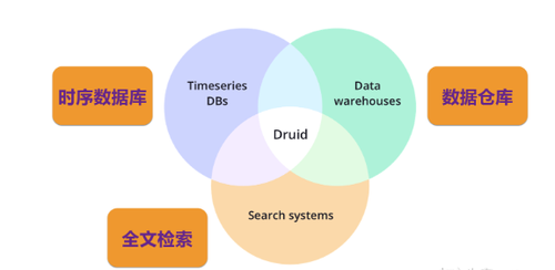 通过 Venn 图可以看到,Druid 兼备了时序数据库、数据仓库和全文检索引擎的部分特点: