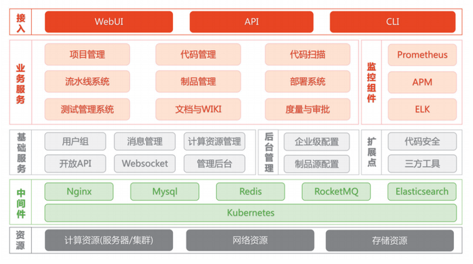 金融业敏捷转型势在必行,《金融科技发展规划(2022—2025年)》中提到,以产品敏捷交付为主线制定清晰研发工作规程(如图1),借助业务开发运维一体化(BizDevOps)快速迭代交付模式,持续优化完善产品开发和交付质量。大连银行结合云原生技术特点和实际研发协同诉求,建设一站式云原生开发运维一体化(DevOps)平台(如图2),积极开展敏捷文化试点推广和敏捷体制转型探索。