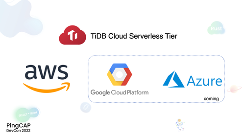 同时 TiDB Cloud 是支持多云厂商的,Serverless Tier 也将会继承这一点。目前 TiDB Cloud Serverless Tier 仅支持在 AWS 上创建,但未来一定会支持更多的云厂商,同时 Serverless Tier 还支持多个区域,满足用户时延和数据存储区域选择的诉求。