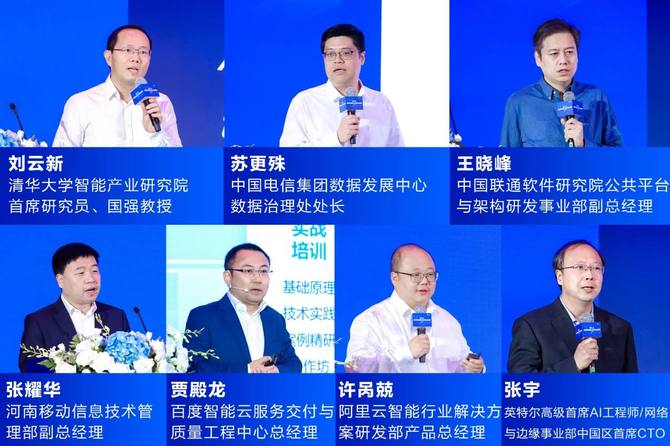 中国通信标准化协会理事长闻库,亚信科技执行董事、首席执行官高念书,中国信通院人工智能研究所副所长魏凯,中国电信云网运营部副总经理宋琦,中国移动信息技术中心副总经理刘虹、中国联通数字化部副总经理娄瑜出席大会并致辞。来自清华大学智能产业研究院、中国电信数据发展中心、中国联通软件研究院、河南移动、阿里云、百度智能云、英特尔的领导、专家和数百位专业人士共同见证这一时刻。