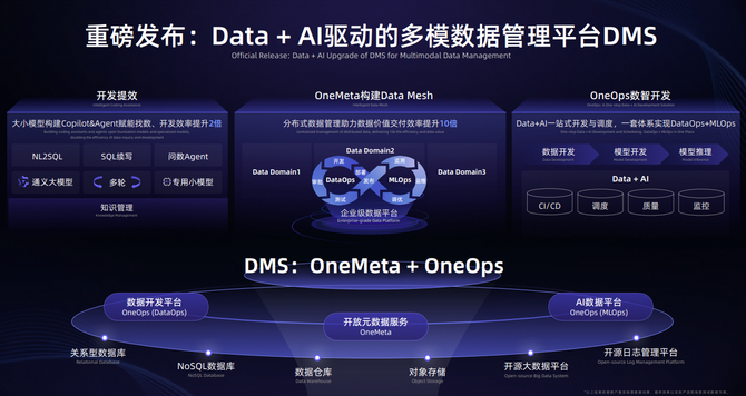 ▲阿里云推出多模数据管理平台DMS:OneMeta+OneOps