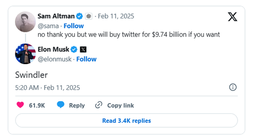 针对马斯克的提议,对方的表现是进行回怼。OpenAI 首席执行官山姆·阿尔特曼 (Sam Altman) 不仅断然拒绝,还在马斯克拥有的 X(前身为 Twitter)上给出讽刺性的回应,“不,谢谢,但如果你愿意,我们将以 97.4 亿美元的价格收购 Twitter。”