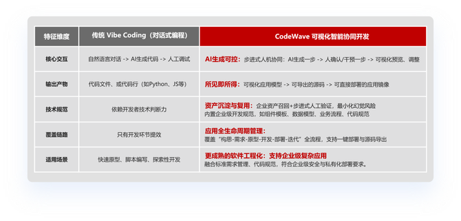 AI直接生成代码的方式仍需要专业开发者的补充、修改,也就是说,实际上没有降低企业中软件开发的门槛。网易CodeWave坚持“人机协同、可控可管”的理念,通过可视化开发的能力与AI生成能力深度融合,构建步进式协同开发模式:AI每生成一步,开发者均可在可视化界面中确认、干预或调整,确保开发过程透明、可追溯。