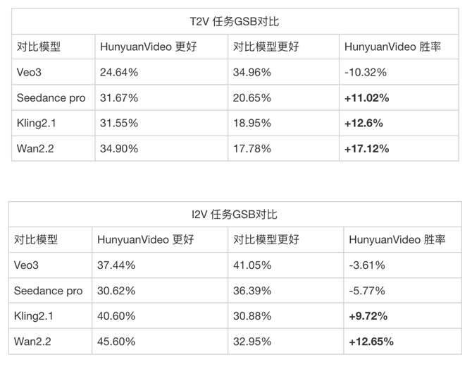 HunyuanVideo 1.5 GSB(Good Same Bad) 评测结果