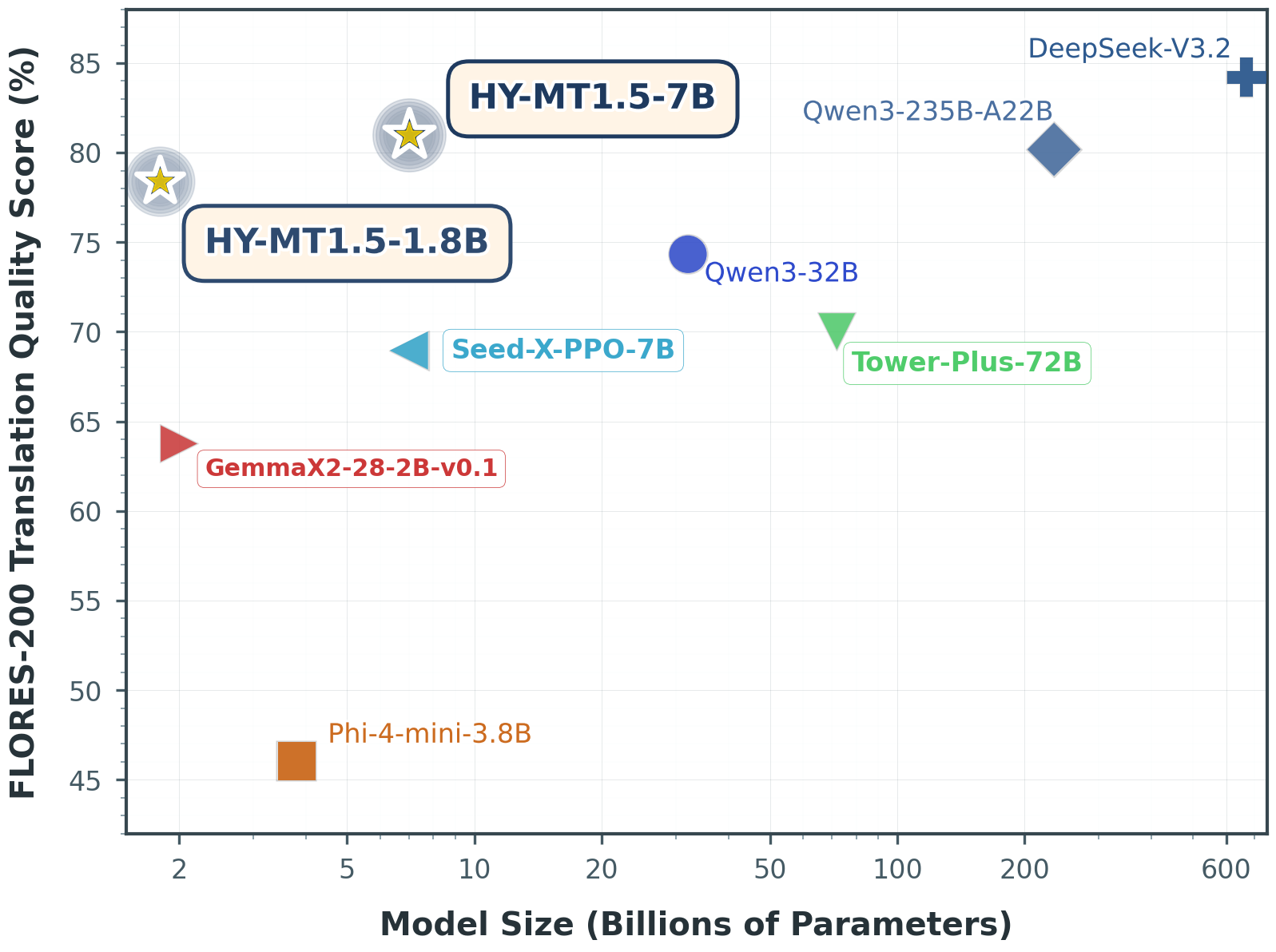 HY-MT1.5-7B 模型效果相比前一版本有较大提升,是此前获得WMT25比赛30个语种翻译冠军模型的升级版,重点提升了翻译准确率,大幅减少了译文中夹带注释和语种混杂的情况,实用性进一步增加。